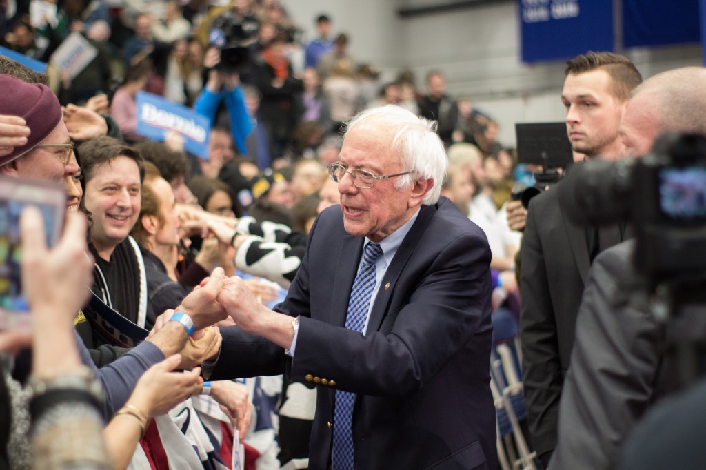 Bernie Sanders shakes the hands of his supporters in Manchester, NH on Tuesday, February 11 2020